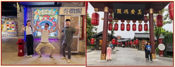 落地西安,便將這絕美夜景盡收眼底;回民街是西安美食的聚集地,烤羊肉串、肉夾饃、涼皮……各種小吃應有盡有,香氣四溢,讓人垂涎欲滴。腳步這下是挪也挪不動了,大家紛紛品嚐著這地道的美食,讚不絕口。