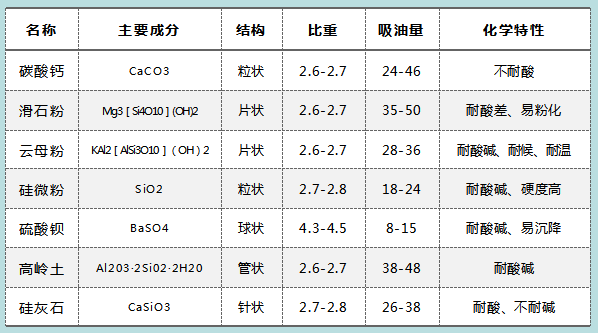 塗料主要是由樹脂、顏填料、溶rong劑ji及ji助zhu劑ji四si部bu分fen組zu成cheng,主zhu要yao起qi裝zhuang飾shi和he防fang護hu作zuo用yong還hai有you一yi些xie特te殊shu功gong能neng。填tian料liao作zuo為wei重zhong要yao的de組zu成cheng部bu分fen,對dui塗tu料liao性xing能neng具ju有you重zhong要yao影ying響xiang,常chang用yong的de填tian料liao有you碳tan酸suan鈣gai、滑石粉、雲母粉、矽微粉、硫酸鋇、高嶺土、矽灰石等。