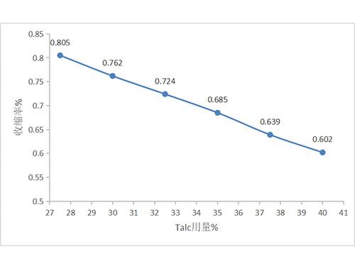 在傳統陶瓷坯體中,燒成收縮主要是因為高嶺石生成莫來石的反應引起的,這種收縮可達20%。而滑石粉在陶瓷坯體中的兩個反應前後的體積收縮較小,根據各礦物相的克分子體積值計算,前者收縮不到12%,後者收縮為4.8%。 從實驗結果中表明以固相反應的陶質和吸水率較高的陶瓷坯體中,滑石粉有利於減小陶瓷坯體的燒成收縮。換…