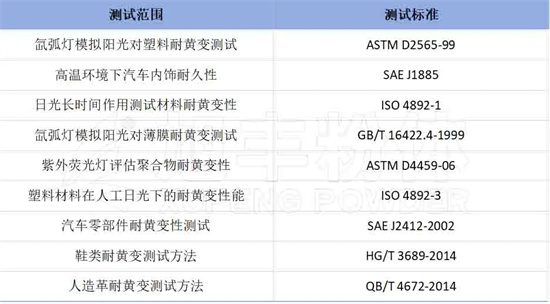 一、常見製品耐黃變測試標準及方法: